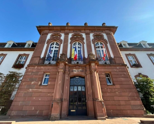 Fabrication et pose de lettrages métalliques sur le fronton de l’Hôtel de Ville de Haguenau