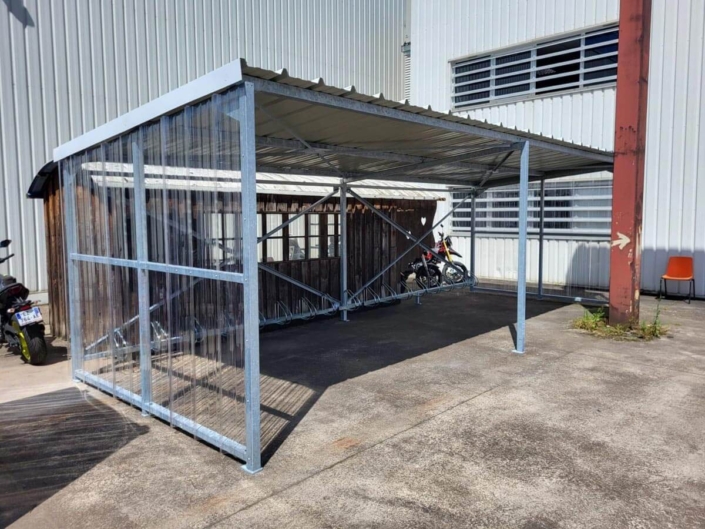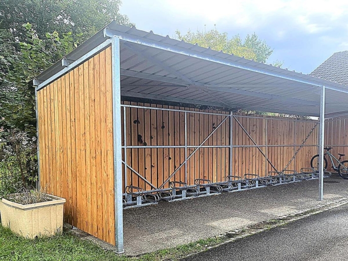 Nos équipes ont réalisé la fabrication et la pose d’un abri à vélos monopente avec lattage en bois Douglas pour un groupe scolaire local et d’un autre abri à vélos avec habillage en polycarbonate ondulé surmontée d’une couverture avec bac acier dans une entreprise bas-rhinoise.
