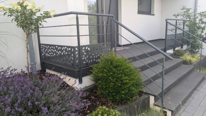 – de reprendre le motif existant dans son portail, pour l’intégrer dans le garde-corps à créer sur sa plateforme d’entrée ainsi que sur la terrasse arrière.