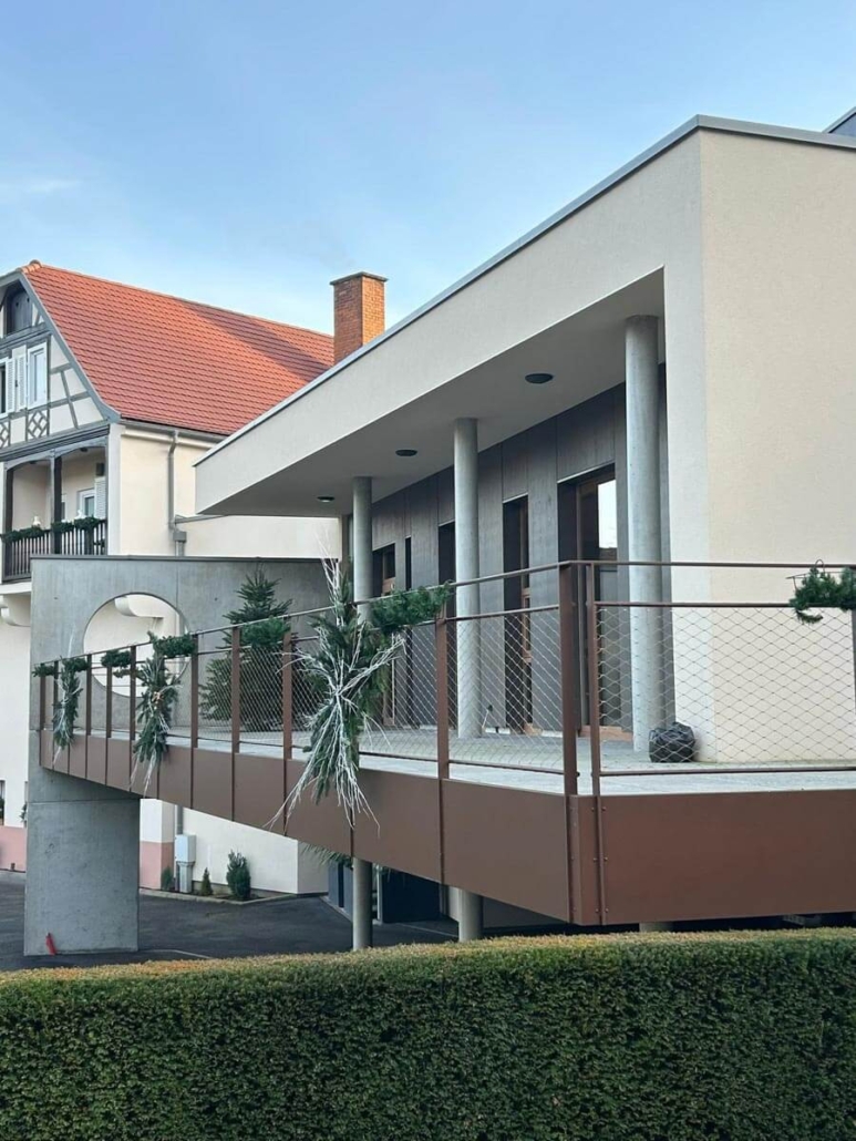 À Niederbronn les Bains, nous avons exécuté le lot Serrurerie qui consistait à la confection et pose de garde-corps, de mains courantes et de brise-soleil extérieurs.