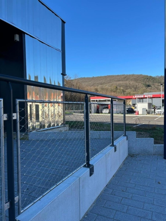Les garde-corps : remplissage avec cadre Inox dont les filets Inox et maille losange