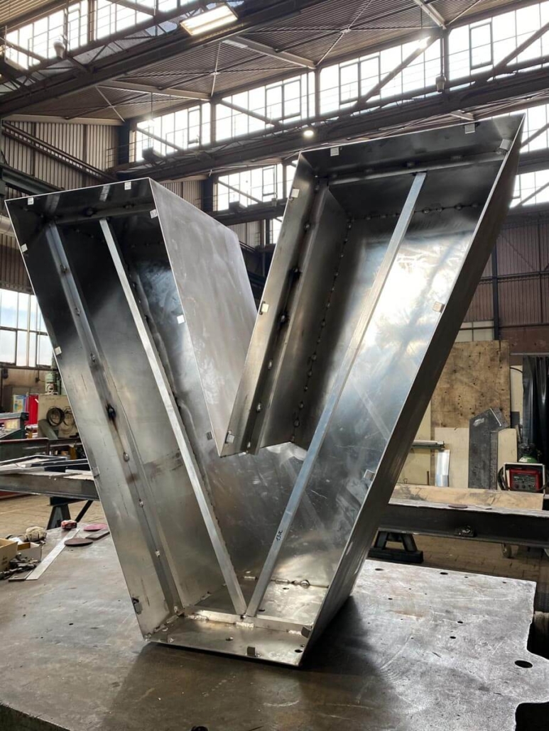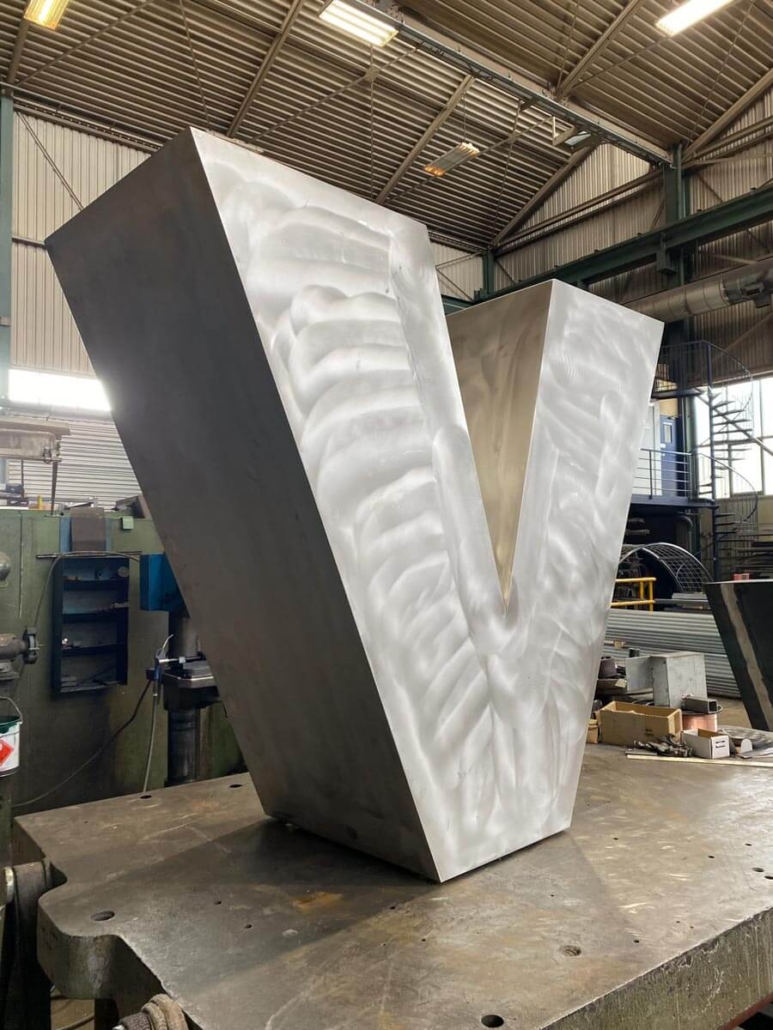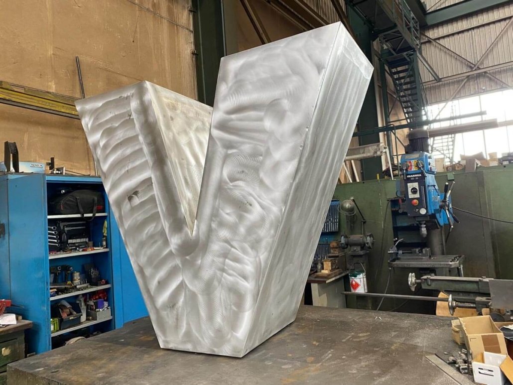 Réfection de la lettre « V » de l’enseigne lumineuse du centre commercial Rivetoile à Strasbourg endommagée suite à un sinistre.